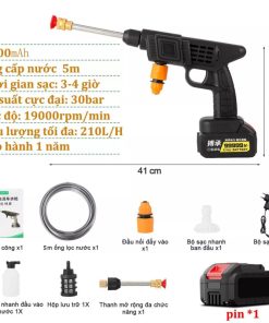 - Tuổi thọ pin mạnh mẽ, pin Lithium 11000r/min giúp kéo dài tuổi thọ của máy. Máy rửa xe ô tô về cơ bản hoạt động dựa trên nguyên lý bơm nước và đẩy áp lực nước. Pin Max lên đến 199V, dùng liên tục tầm 30-35 phút