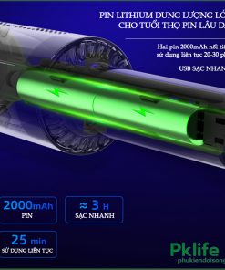 - Hai pin 2000mAh nối tiếp, sử dụng liên tục 20-30 phút