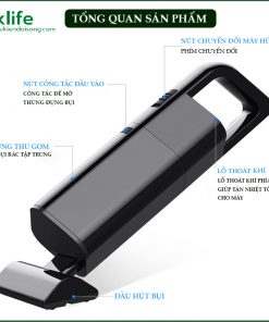 - Với thiết kế không dây máy hút bụi mini cầm tay không dây có thể sử dụng cho cả xe hơi và nhà