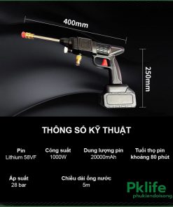 Kích thước chi tiết của máy rửa xe cầm tay không dây MRX-120001