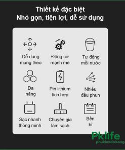 – Máy có các đặc điểm nổi bật như dễ dàng mang theo, động cơ mạnh mẽ, tự động mồi nước, đa năng, pin lithium thích hợp, nhiều đầu vòi, sạc nhanh thông minh, chuyên gia làm sạch, bền bỉ đặc biệt thiết kế nhỏ gọn tiện lợi có thể đem theo đi bất cứ đâu
