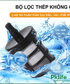 - Đầu hút nước với thiết kế bộ lọc thép không gỉ, loại bỏ hoàn toàn bụi bẩn, các chất thải